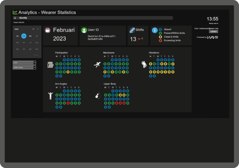 - Designed for HSE professionals and ergonomistsProvides reports and statistics on employee movement and exposureIdentifies exceeded action and limit valuesCovers whole-body vibration, body postures, arm positions, and shock incidentsUses recognized standards and ergonomic guidelines for filteringAllows filtering by time, organization level, and individual employees to target improvements