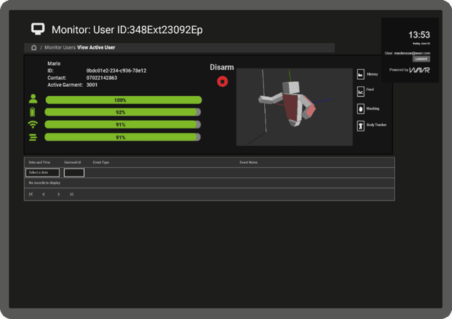 This feature enables real-time monitoring of data collected from Zentnl shirts, providing live updates on motion data, exposure levels, and any triggered incidents or alarms. It facilitates prompt response and intervention, ensuring a proactive approach to safety and well-being.